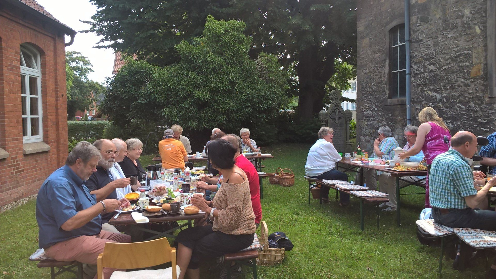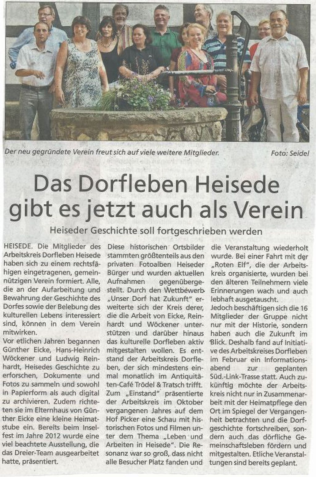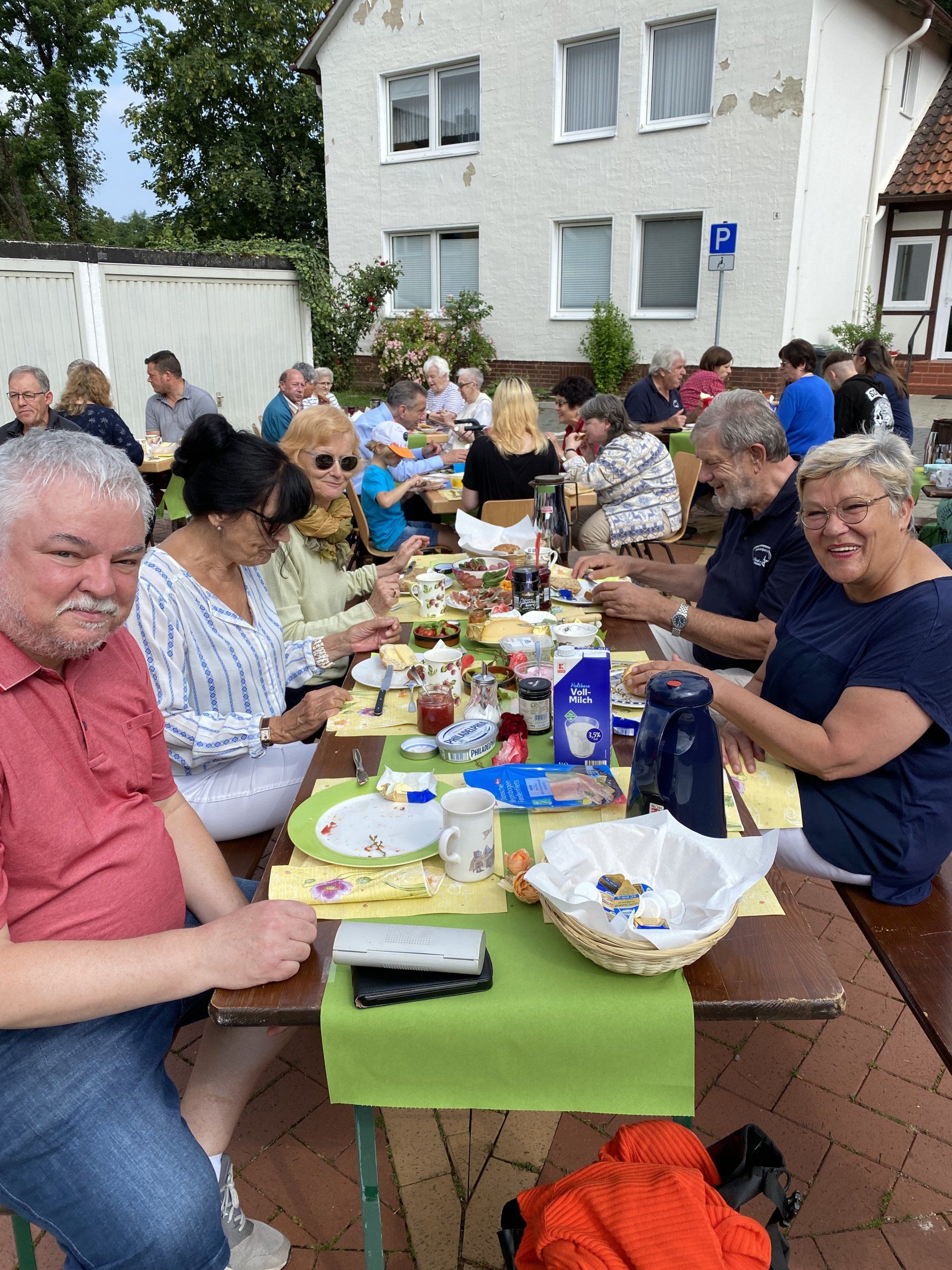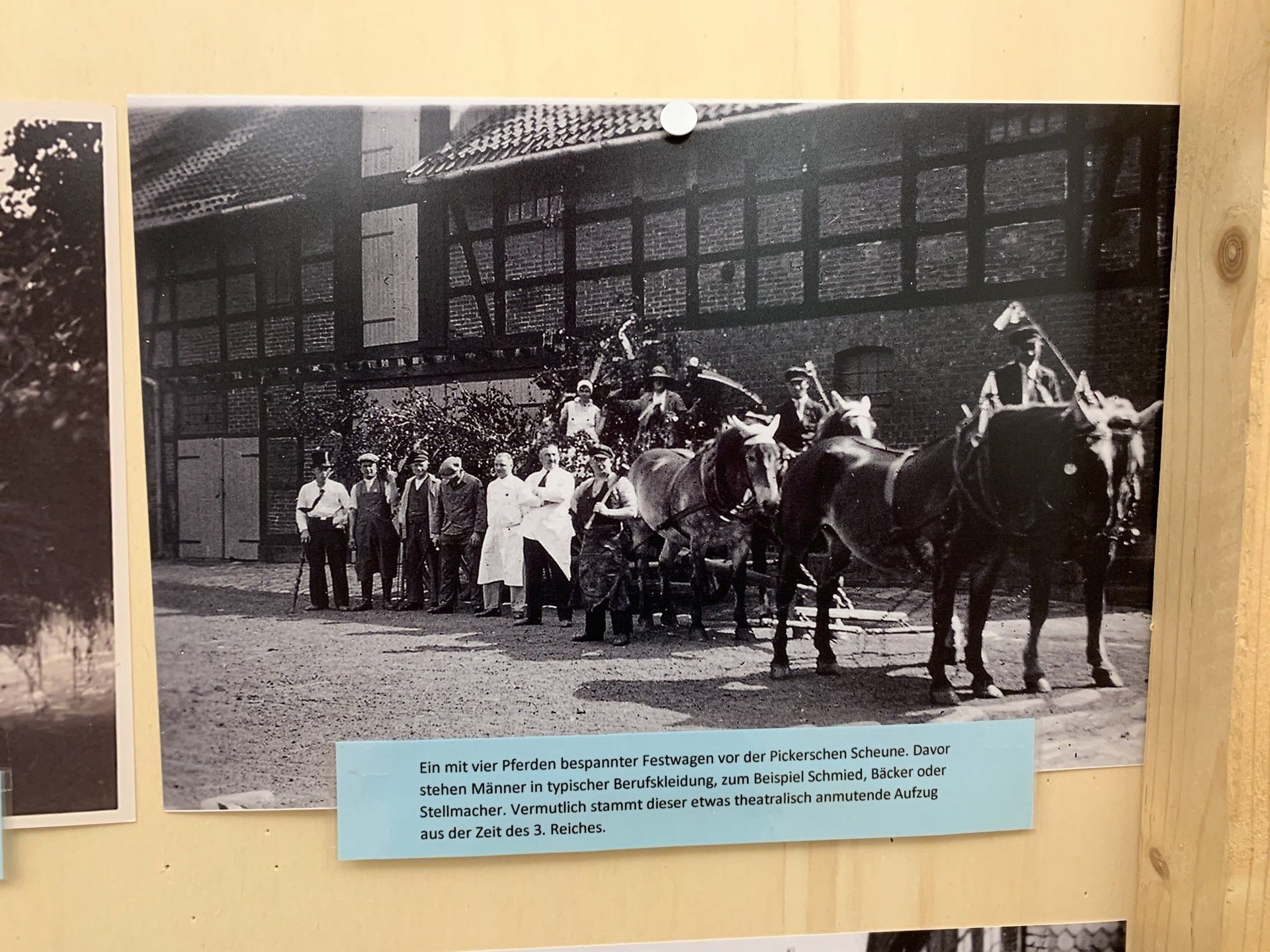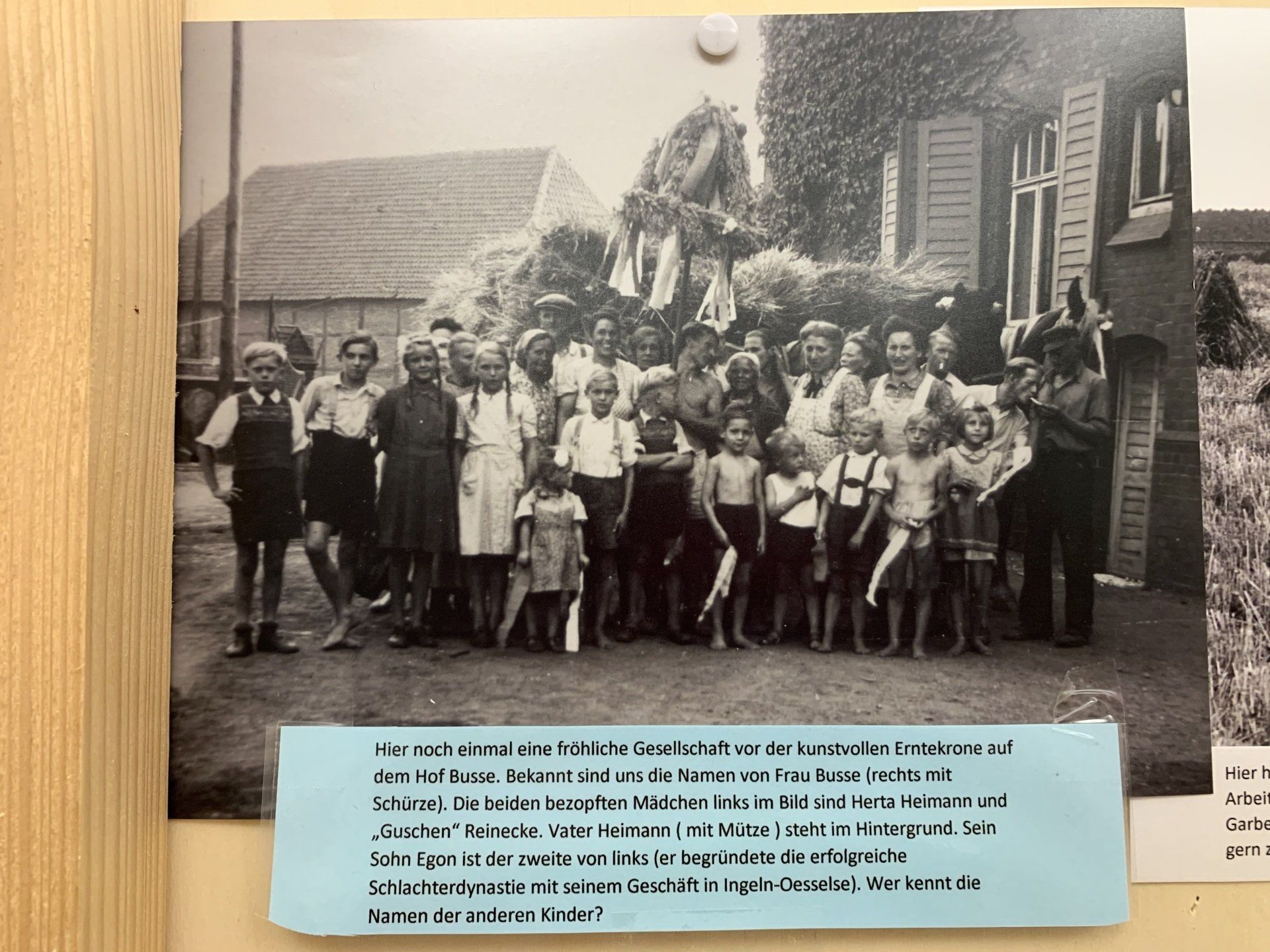 Am Sonntag, dem 26.05.2024 führte der AK Dorfleben e.V. einen informativen Dorfspaziergang durch, der von Ludwig Reinhardt und Hans-Heinrich Wöckener vorbereitet und begleitet wurde. Es nahmen 37 interessierte Heiseder Bürgerinnen und Bürger, sowie „Frühere“ aus umliegenden Dörfern und aus Sarstedt teil. Der Rundgang begann um 14.00 Uhr an und in der Kirche mit vielen Informationen über die bewegte Geschichte der Kirche und die gesellschaftliche Entwicklung der dörflichen Gesellschaft im 18. und 19. Jahrhundert. Anschließend führte der Weg an den historischen Gebäuden in der Dorfstraße vorbei über das Anwesen von Ulrich Kreth zum ältesten Bauernhof, dem Hof Picker. Zurück durch die „Insel“ ging es dann zum Hof Spiegel, wo es vom jetzigen Inhaber Informationen über die familiäre Situation im 20. Jahrhundert gab. Weiter führte der Weg über die Baum- und Rosenschule Stenzig, auf dessen Gelände früher ein germanischer Urnenfriedhof war, durch einen schmalen Pfad zurück auf die Dorfstraße und vorbei an dem ehemaligen Dorfgemeinschaftshaus, der heutigen Kleinsporthalle vom Heiseder Sportverein, wieder in die Dorfmitte. Ein gemütlicher Abschluss mit Kaltgetränken und dem Ruhmreichen alter Fotos von ehemaligen Gebäuden und Festen fand der Dorfspaziergang im Gemeinderaum seinen Abschluss. Hier wurde sich noch viel über das Gesehene und Gehörte ausgetauscht. Hans-Heinrich Wöckener rundete das Ganze noch mit zwei Anekdoten aus seiner Kindheit ab.